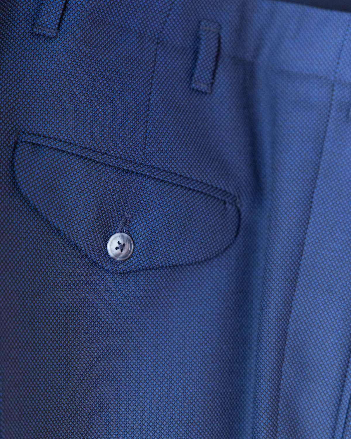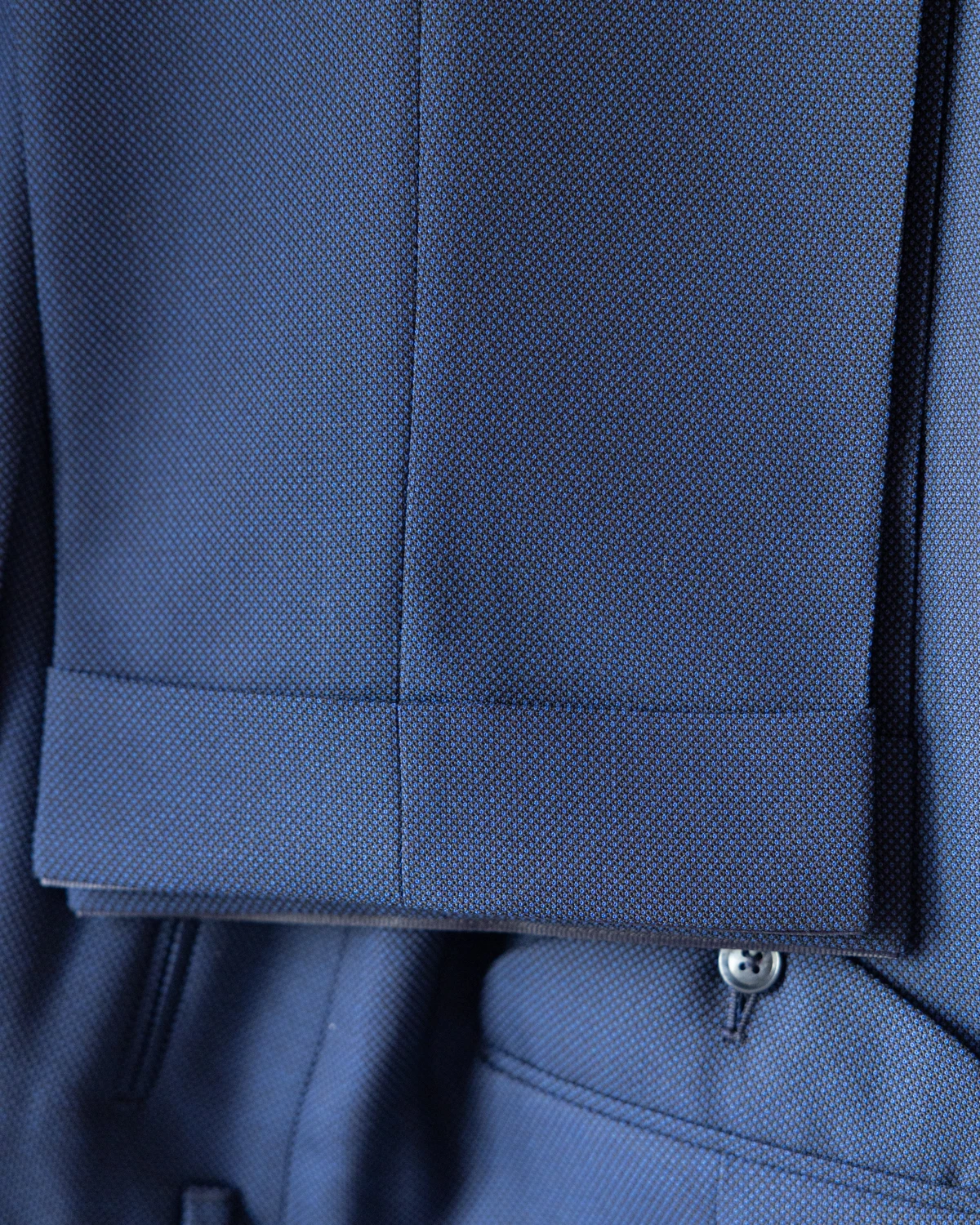 Do ich uszycia wykorzystano wysokiej jakości wełnę od renomowanej tkalni Drago. Na pierwszy rzut oka tkanina prezentuje się jako jednolita, dopiero z bliska odsłaniając swój subtelny splot typu „rybie oko”, nadający głębi koloru.