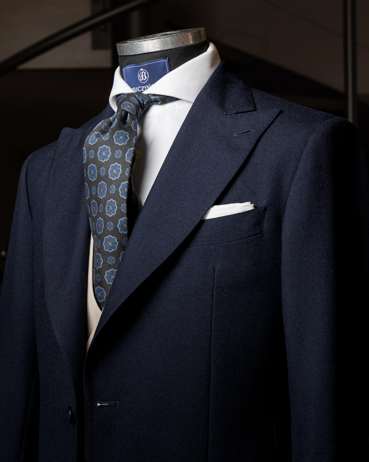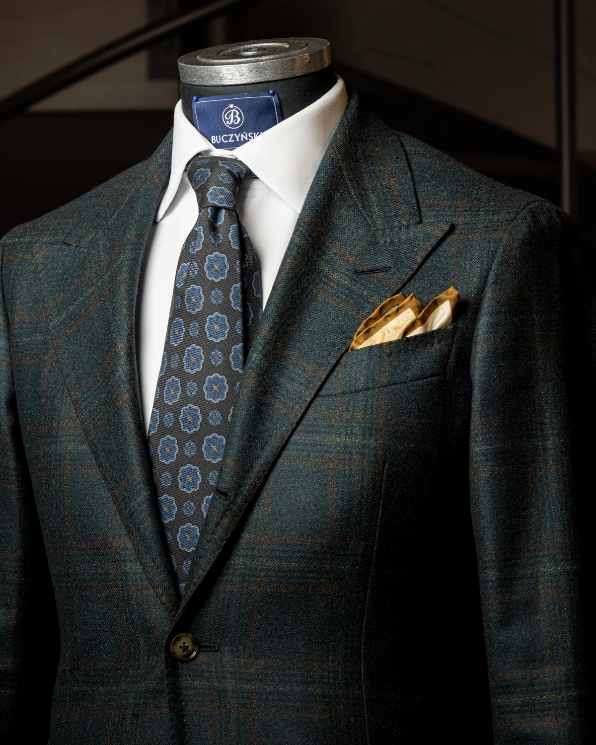 Krawat został uszyty w polskiej manufakturze z włoskiego jedwabiu pochodzącego z rejonu Como. Szerokość wynosi 8,5cm, więc jest ponadczasowa i uniwersalna. Długość to ok. 150cm.