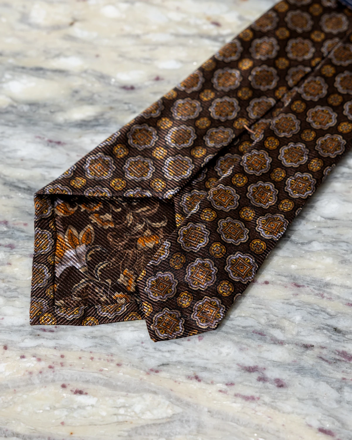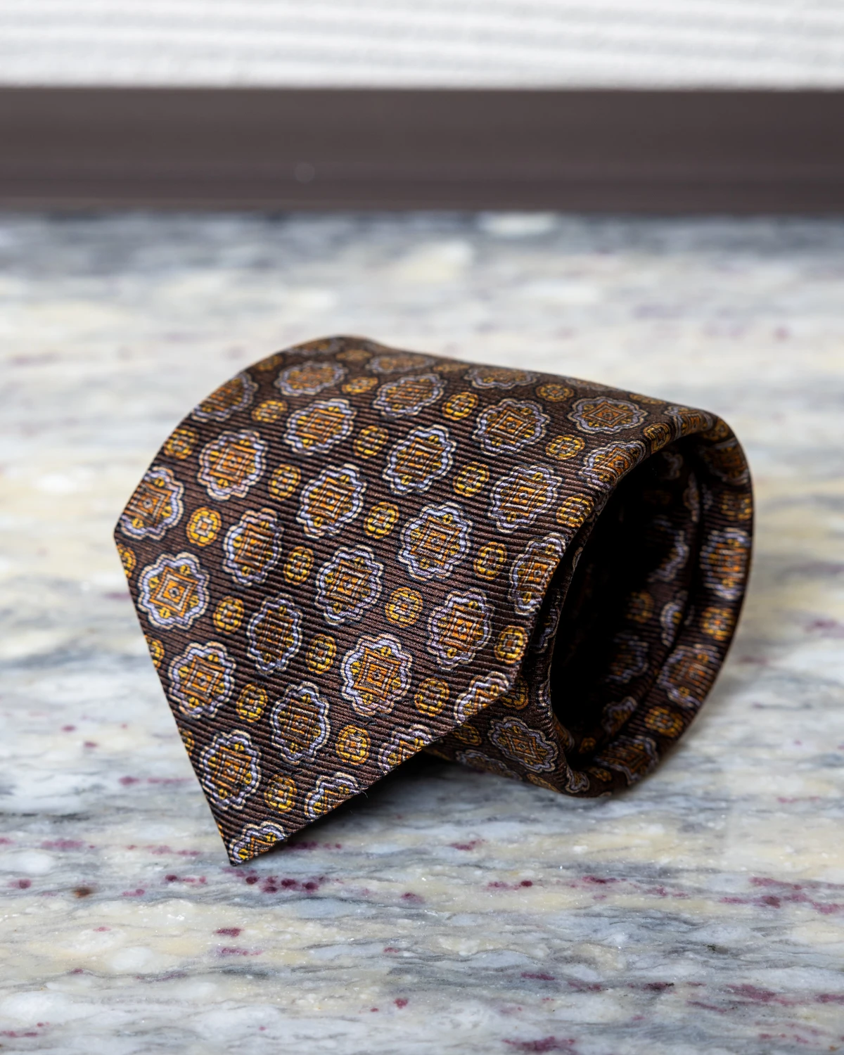 Brąz to kolor, który od lat pozostaje synonimem klasy i swobodnej elegancji. Ten jedwabny krawat to propozycja dla osób, które cenią detale widoczne dopiero przy bliższym spojrzeniu.