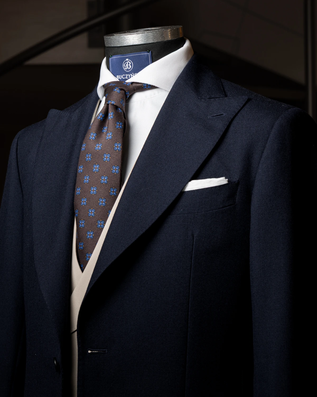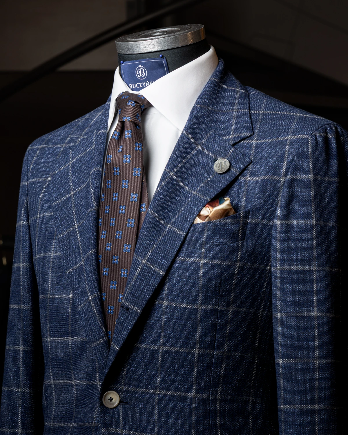 Model został uszyty w Polsce z wysokiej jakości włoskiego jedwabiu pochodzącego z rejonu Como. Ma około 150 cm długości i 8,5 cm szerokości, co zapewnia ponadczasowe proporcje i sprawia, że pasuje do większości sylwetek oraz klasycznych fasonów marynarek.