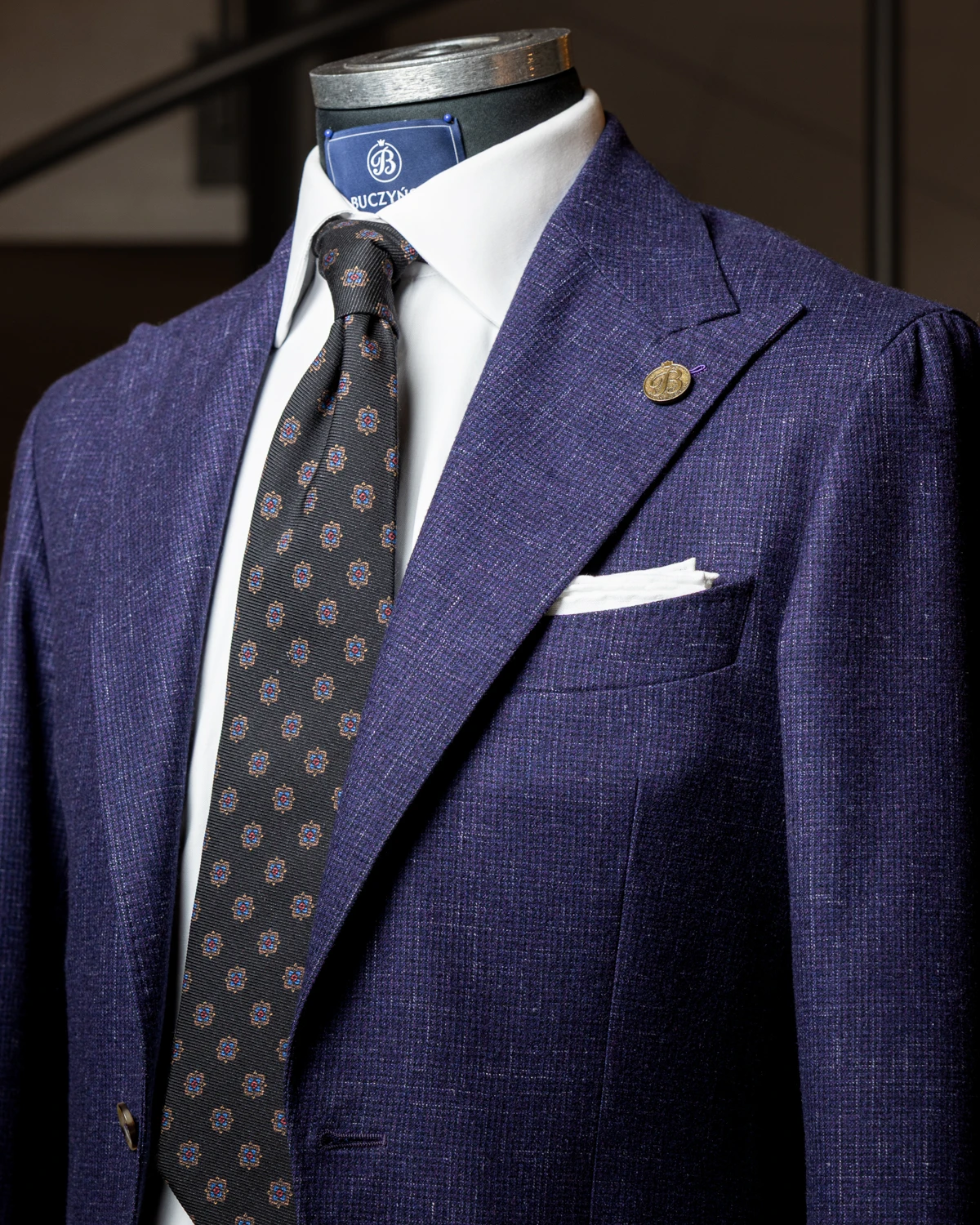 Krawat został uszyty w Polsce, z jedwabiu pochodzącego z włoskiego rejonu Como. Jego połysk jest bardzo subtelny. Długość krawata to 150cm, a szerokość 8,5cm.