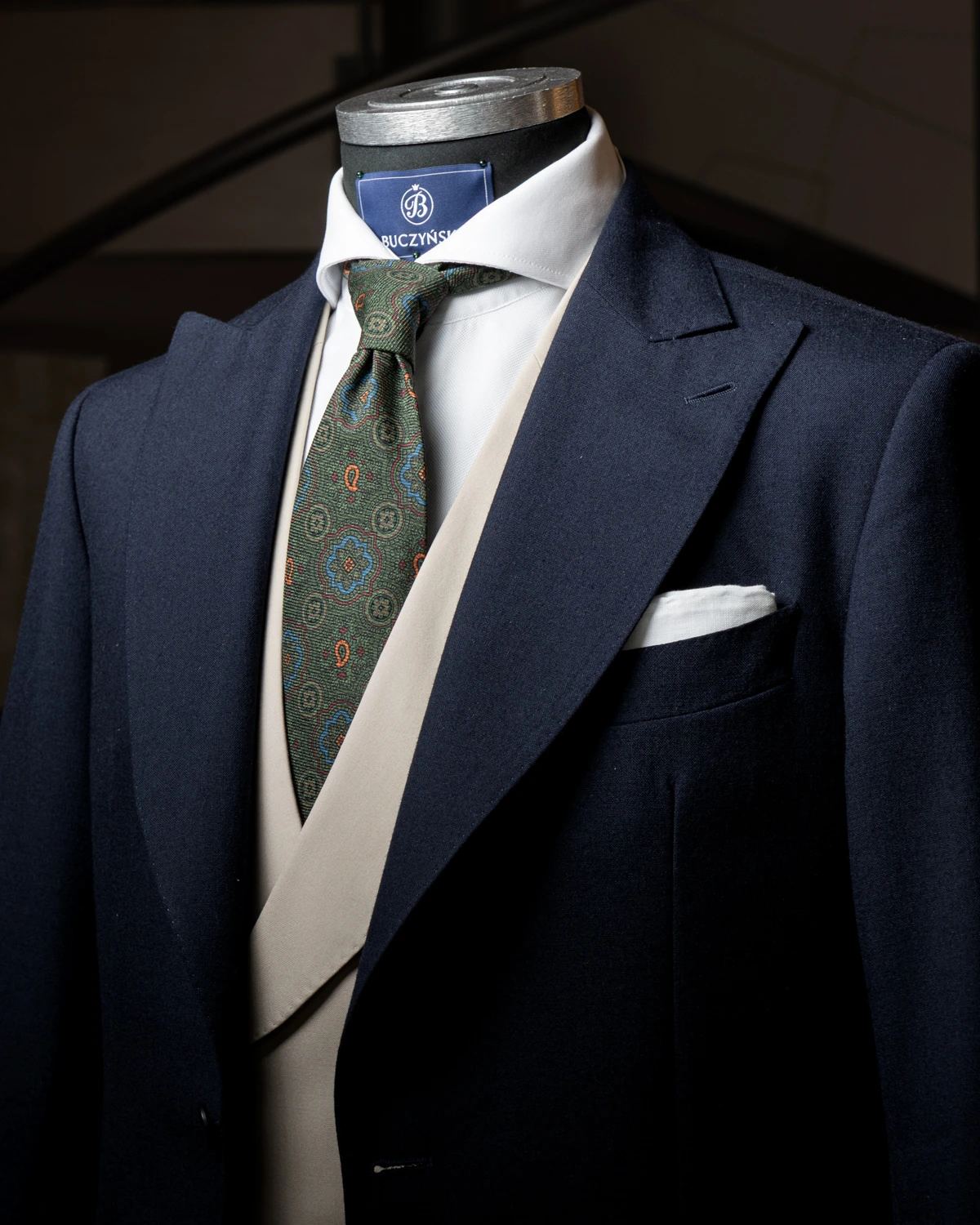 Nasz zielony krawat w duży wzór ornamentowy przyciąga uwagę bogatym detalem, ale dzięki głębokiej, stonowanej kolorystyce nadal pozostaje stylowy i łatwy do łączenia z wieloma kolorami marynarek. To dodatek, który świetnie sprawdza się jako mocniejszy akcent w klasycznym zestawie.