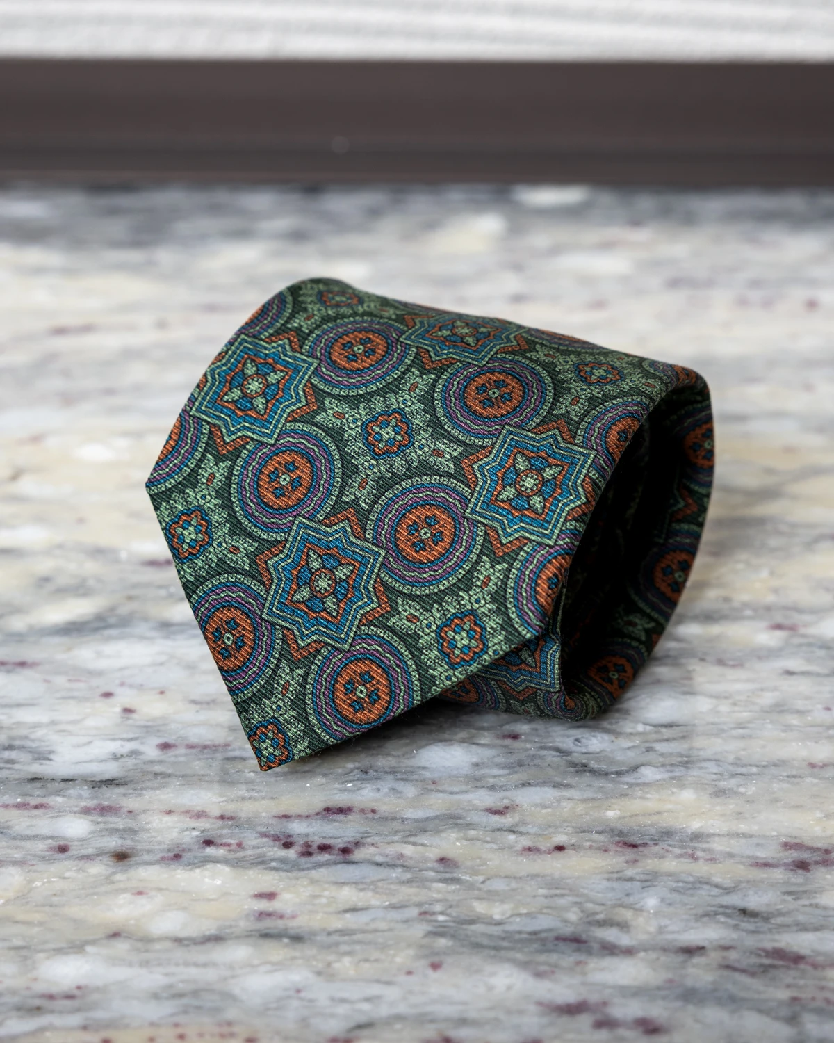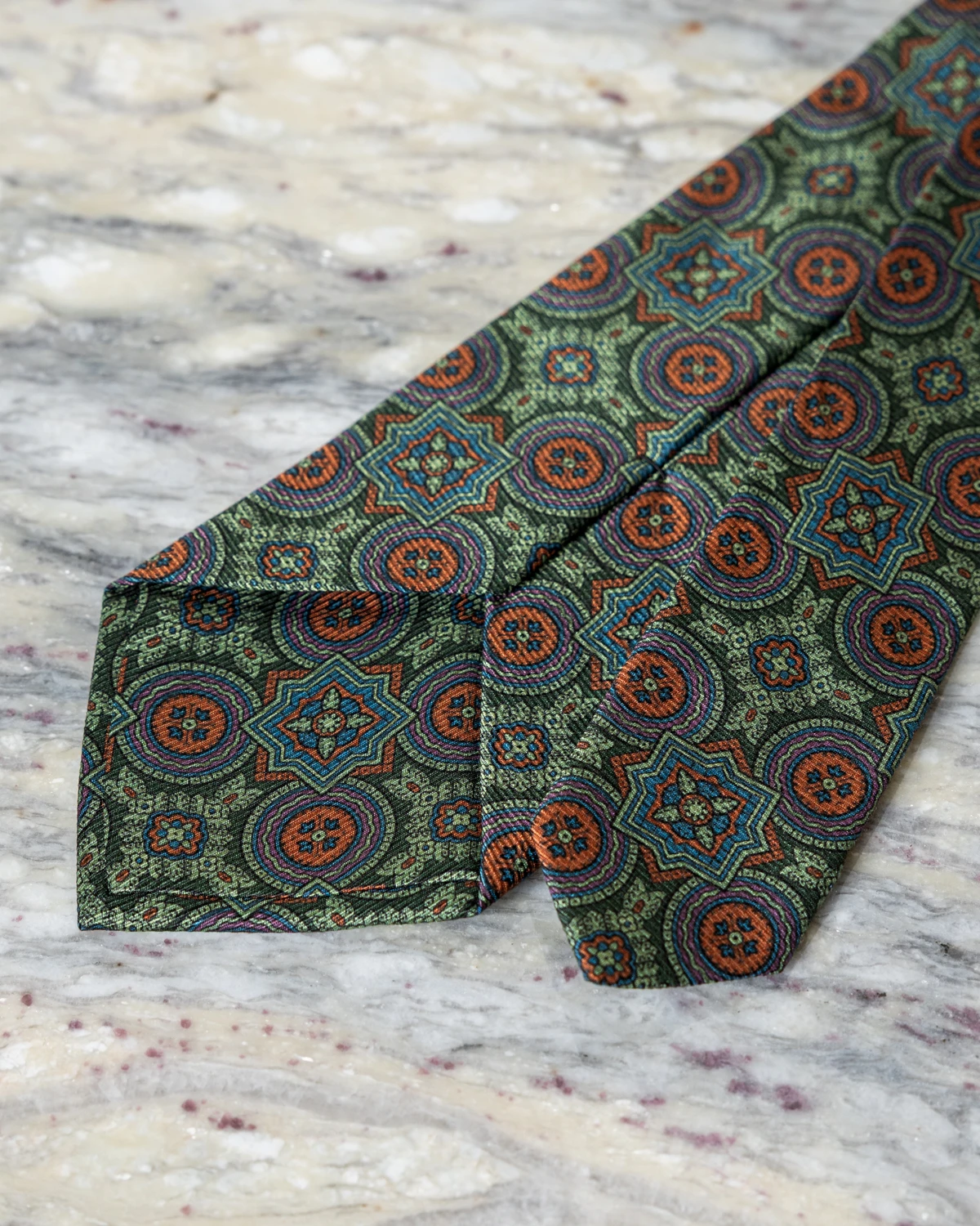 Krawat jedwabny zielony we wzór vintage