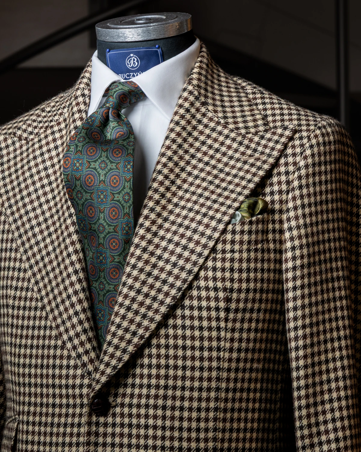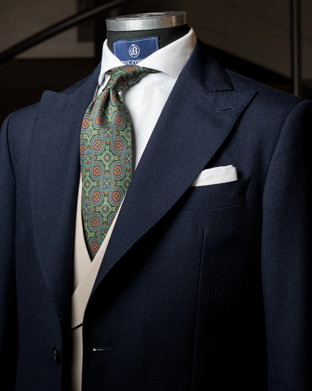 Krawat został uszyty w Polsce, z jedwabiu pochodzącego z włoskiego rejonu Como. Jego połysk jest bardzo subtelny. Długość krawata to 150cm. Krawat jest szeroki na 8,5cm.