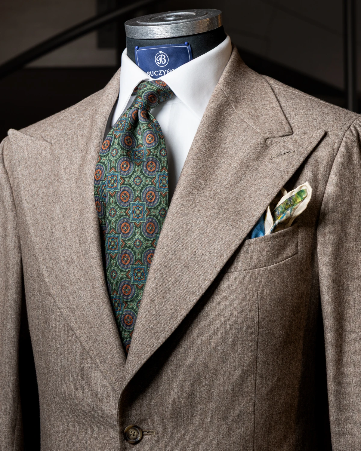 Nasz zielony krawat we wzór vintage przyciąga wzrok nieoczywistym, klasycznym motywem, który nadaje całości lekko retro klimat. To dodatek, który wyróżnia się detalem, a jednocześnie pozostaje stylowy i łatwy do zestawienia z szeregiem marynarek i koszul, wprowadzając odrobinę finezji i nostalgicznego uroku.
