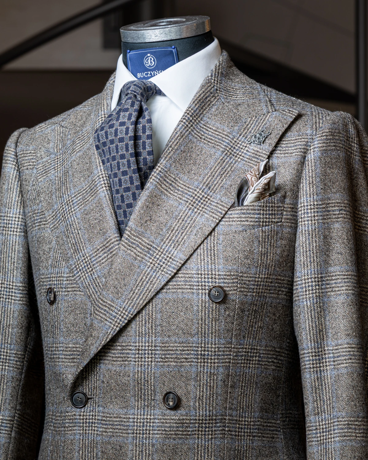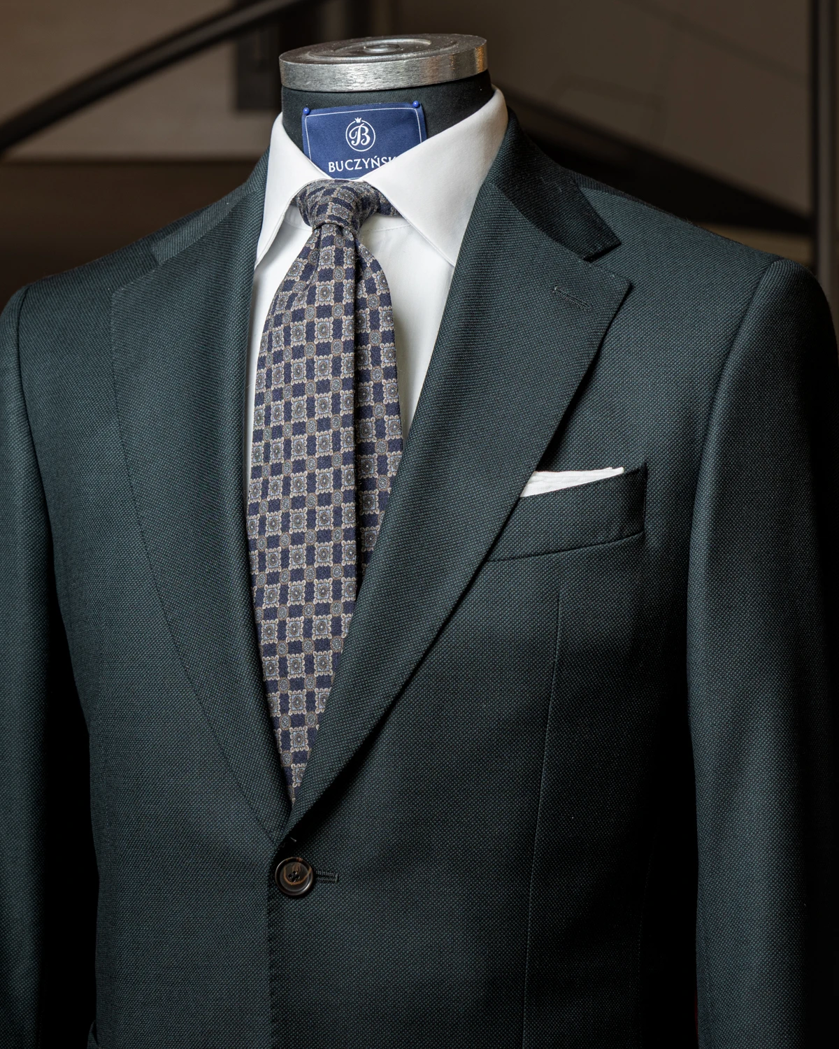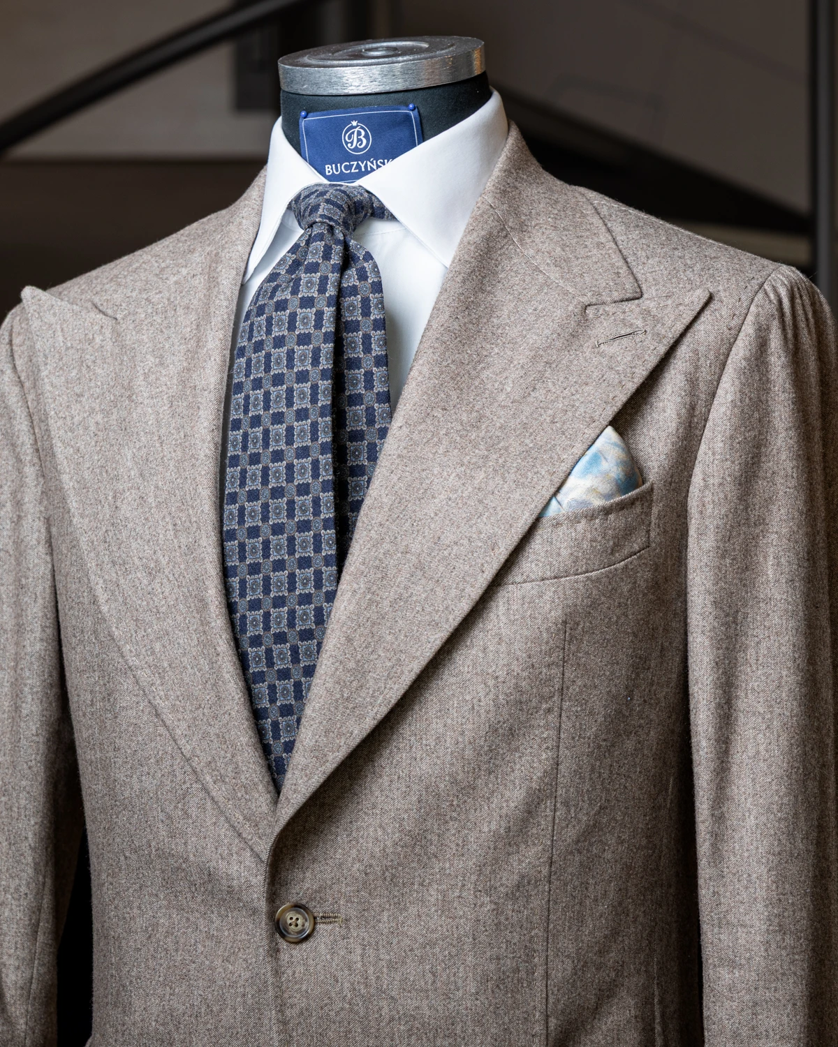 Krawat został ręcznie uszyty w Polsce z wysokiej jakości wełny o delikatnej, matowej fakturze. Wkład dopasowano do charakteru tkaniny, aby zapewnić estetyczne układanie się węzła i komfort noszenia. Klasyczne proporcje – ok. 150 cm długości i 9 cm szerokości – sprawiają, że krawat pasuje do większości typów sylwetki oraz tradycyjnych szerokości klap marynarki.