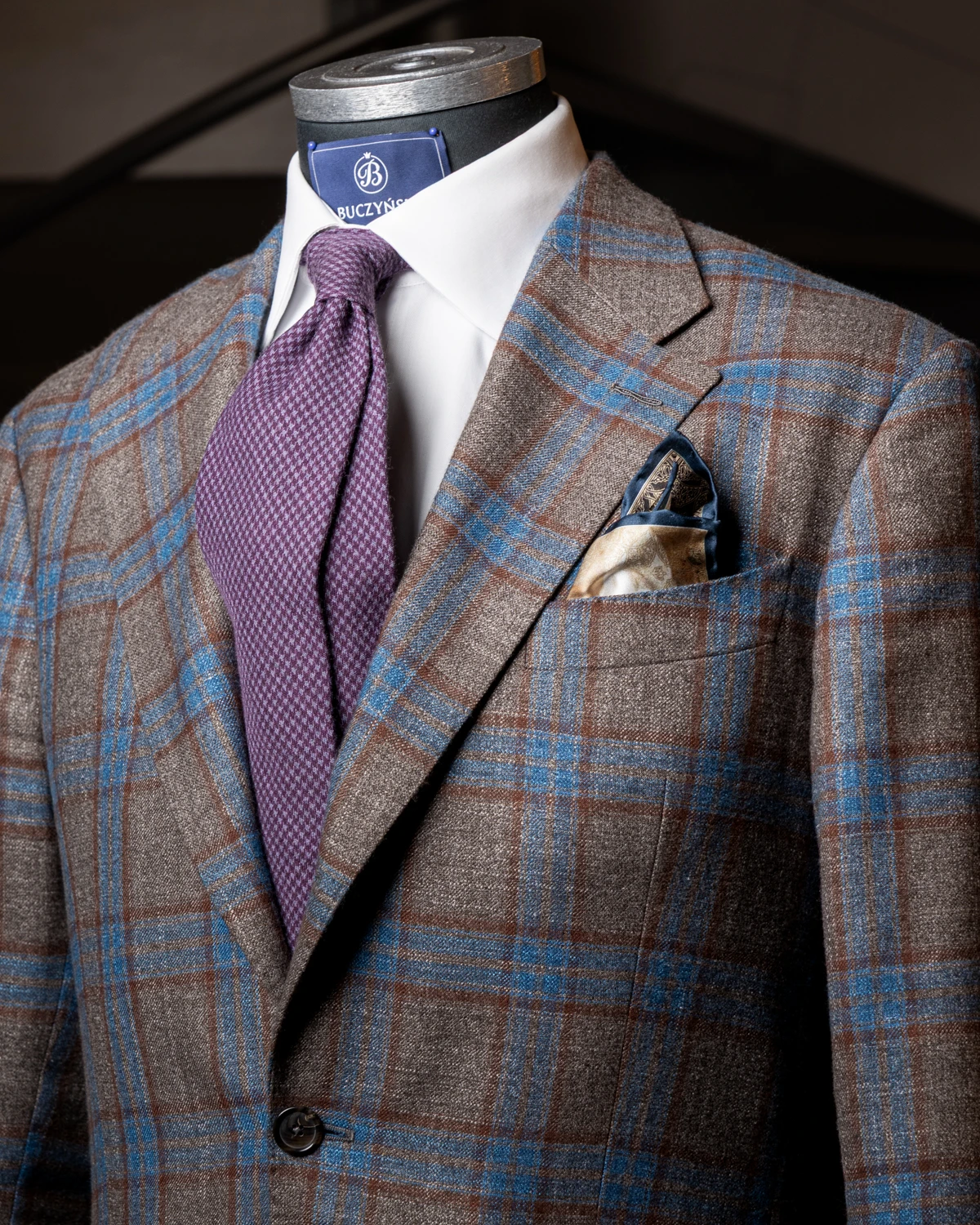 Różowa pepita ożywia zestaw, nie odbierając mu elegancji. Świetnie komponuje się z granatem, szarością, brązem czy beżem, a w połączeniu z białą lub błękitną koszulą tworzy spójny, dopracowany look.
