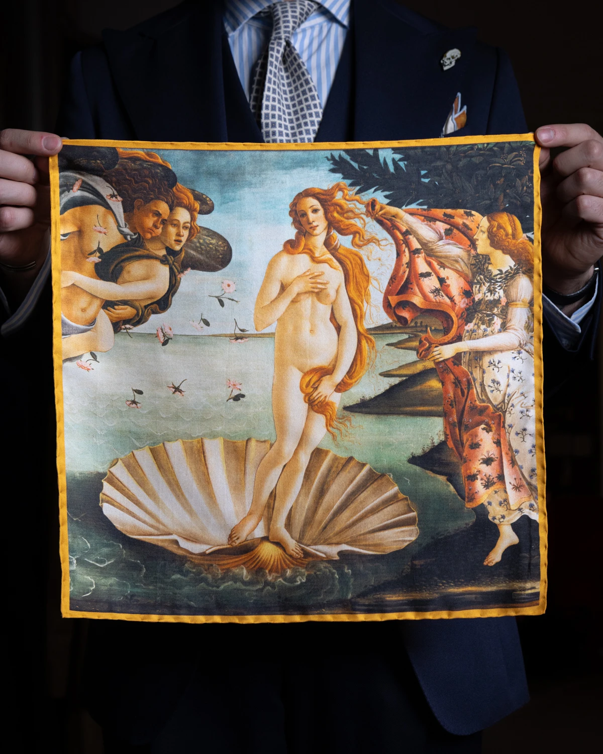Ten model został ozdobiony fragmentem obrazu „Narodziny Wenus” Sandro Botticellego. Paleta barw jest jasna i delikatna – kremy skóry, pastelowe błękity morza, miękkie zielenie i subtelne różowe akcenty. Dzięki temu poszetka bardzo dobrze odnajdzie się zarówno w stylizacjach formalnych, jak i tych codziennych.