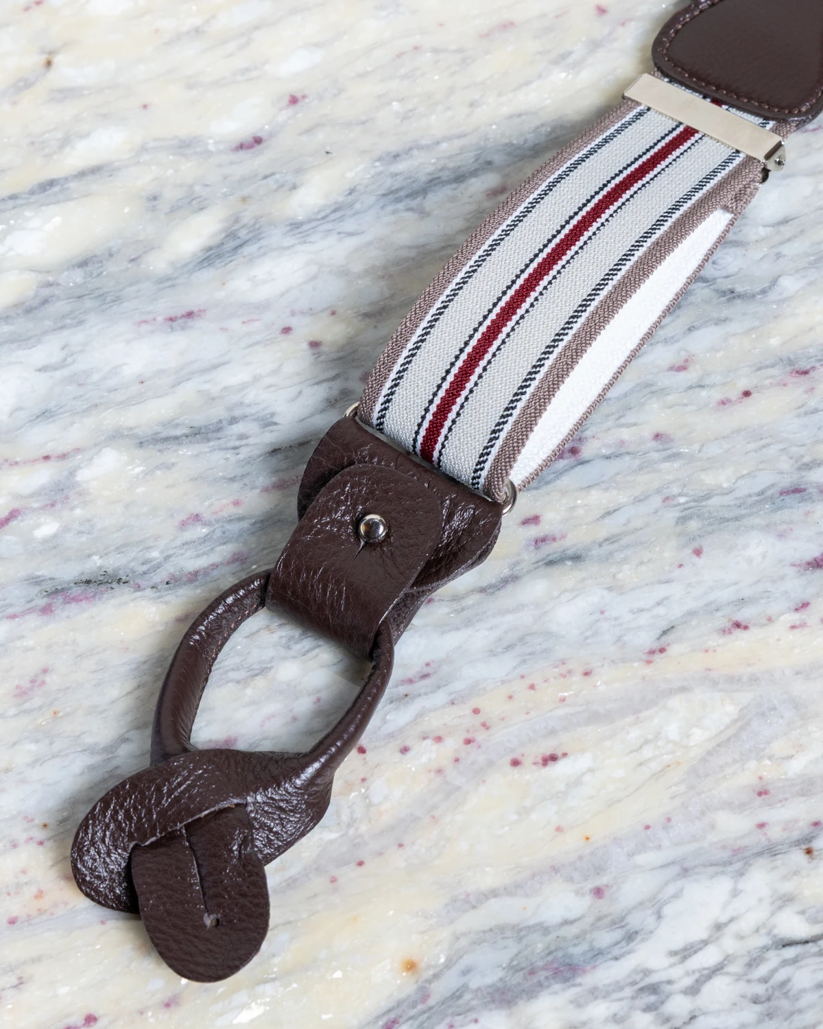 Szelki zostały wytworzone w małej manufakturze w Polsce. Zapięcia na guziki wykonane są z ciemnobrązowej skóry i mają ręcznie malowane brzegi, natomiast klamerki wykonano ze srebrnej stali nierdzewnej.